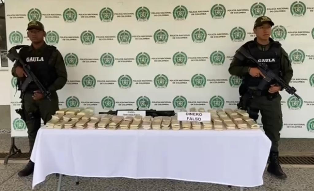 En el registro al inmueble, los uniformados incautaron 170 paquetes que simulaban contener dólares y 12 paquetes que simulaban contener euros, al igual que un fusil traumático.